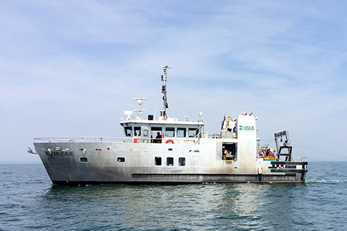 The U.S. Geological Survey (USGS) achieved a major milestone on August 31, 2015 when the Research Vessel (R/V) Arcticus was commissioned into service on the Great Lakes under command of the USGS Great Lakes Science Center. The historic event marked the final step toward modernizing the entire USGS Great Lakes research vessel fleet with five state-of-the-art floating laboratories. The fleet plays a crucial role in the sustainability of the Great Lakes fishery and the renowned recreation and tourism economy of the region.