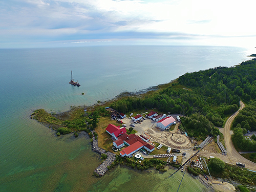 Hammond Bay Biological Station aerial photo in 2017. The four old buildings are in the lower-right corner. Credit: USGS