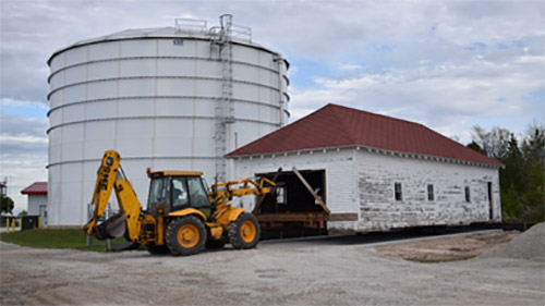 Out with the old, in with the new! To make way for the new laboratory, four old buildings on the HBBS property needed to be removed. Three buildings—a former limnology laboratory, workshop, and metal building—were demolished, while one building—a nearly 100 year old boathouse—was relocated on the HBBS property for safe-keeping away from the bulldozers, excavators, and cement trucks descending on HBBS for construction. The limnology laboratory (constructed in the 1930s) and boathouse (constructed circa 1930) date back to the days when the U.S. Coast Guard housed its Hammond Bay Station on site (the station was decommissioned in 1947). Originally used by the Coast Guard for a variety of human life-saving operations, the buildings were repurposed by HBBS staff starting in 1950 when the biological station was established for another sort of life-saving activity—saving native fish in the Great Lakes from the menace of the sea lamprey, as well as saving the livelihoods of thousands of people across the Great Lakes basin involved in the fishing industry.